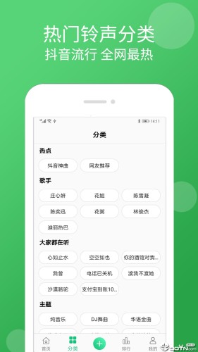 涵盖网络流行、轻音乐、DJ、欧美日韩、时下热播剧、个性搞笑、摇滚等热门铃声。