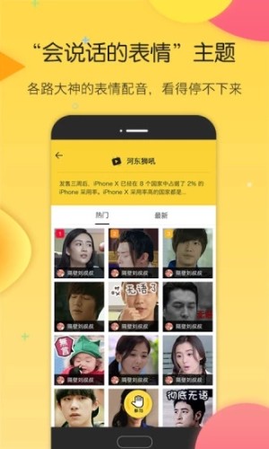 搜狗云表情首创了有声表情包功能——“会说话的表情”,用户只需在素材库中挑选动态表情素材,并为其配音,即可生成10s以内的有声表情,一键分享至微信、QQ等多种聊天应用,斗图姿势更拉风。
