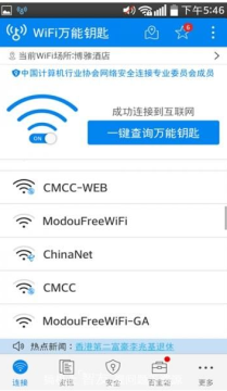 【便捷】点击一键查询,秒速发现免费WiFi热点,一键安全连接,操作简单,上网就是这么轻松。内置中国移动CMCC、中国联通ChinaUnicom、中国电信ChinaNet等运营商热点,安全连接,方便便捷。