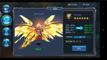 2、 翅膀进阶时,使用“羽翼之灵”可以获得进阶经验,升星经验值提升满后,即可达到下一阶(星级),进阶过程中提升经验值有几率出现多倍暴击效果,获得大量经验。