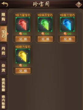 宝石获得途径太多了,市场啊,比武切磋的商店啊,帮派副本啊,BOSS奖励啊~~数都数不过来~小编建议玩家,如果可能,这些功能每天都是光顾一下,最大量的去获得宝石。
