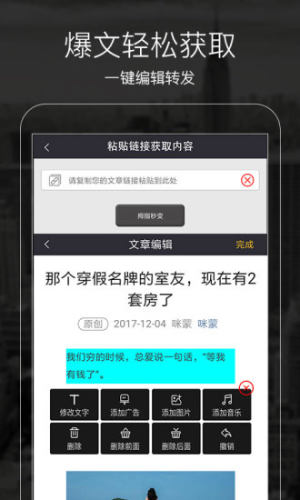 「微信爆文一键获取」:再编辑、添加微商水印,轻松裂变营销;