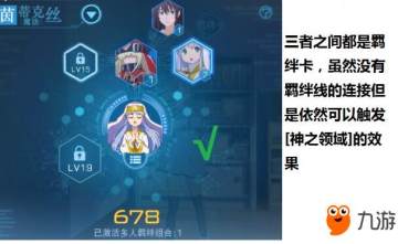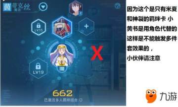 6:多重羁绊的触发效果:当玩家没有羁绊卡而是用角色产生羁绊时最多触发2件套效果。2件套以上的羁绊卡必须要用羁绊卡触发(这样说有的复杂,简单来说就是如果我要触发神之领域这个3件套效果。我主角是小黄书然后带米夏和神裂的卡是不会触发的。必须要小黄书,米夏,神裂都是装备的羁绊卡才会生效)