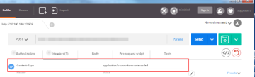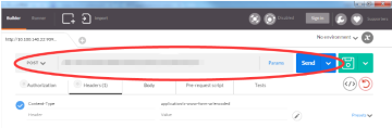 2.【POST请求】打开后,在红圈里面输入需要测试的接口地址,选择post方式,然后在下面的Headers中手动添加一个相应的键值。这个很关键,一定要填写正确。(如:json格式的提交数据需要添加:Content-Type :application/x-www-form-urlencoded,否则会导致请求失败)如图所示: