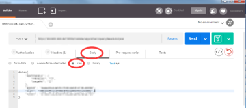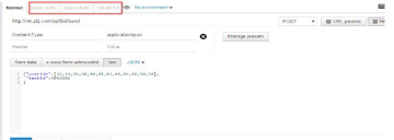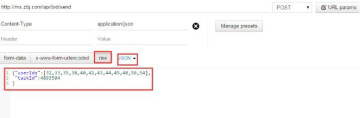 选择Body选项卡,然后选中row,在编辑框中输入你需要提交的参数即可: