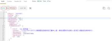 点击Send即可提交请求,然后在下面查看请求结果,并且可以以Pretty、Raw、Preview三种方式查看。如图: