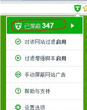 1.在chrome浏览器安装好广告终结者插件后,在浏览器的右上方有广告终结者的按钮标记。用户点击查看详细统计信息,查看已经屏蔽的多少广告。如下图所示: