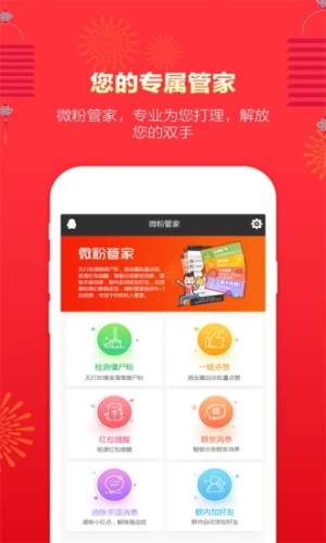 微粉管家app是一款超好用的微信好友管理工具,软件支持僵尸粉检测、一键点赞、红包提醒、群发消息、群内批量加好友等实用功能,是您身边专业的微信管家。