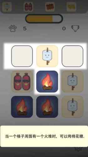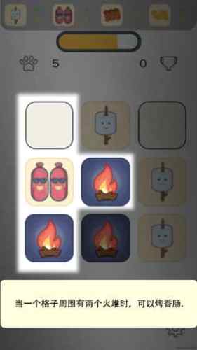 点击移动火堆,烤熟当前关卡需要的食物通关