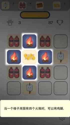 操作就是移动火堆,不同食物需要的相邻格放置的火堆数量不一样。每个关卡需要达成对应的食物数量。感谢试玩!还会继续优化的。其实是之前我看生命游戏的理论产生的想法,因为生命体太过抽象所以换成了食物,玩法表达上都需要思考。