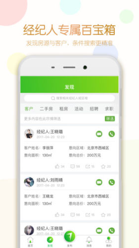 经纪人可在这里发现房源、职位、活动、人才等信息,彼此进行互动,丰富经纪人的生活圈,发掘更多机会;