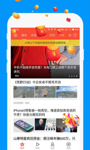 1.海量新闻资讯,智能推荐,私人定制你的热点头条,红包时时有,抢到手软;