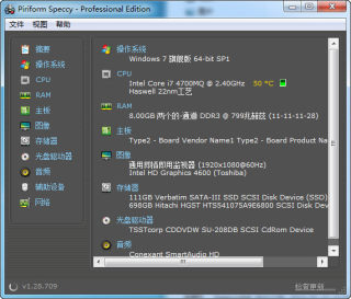 虽说查看硬件信息(硬件检测)的软件不少,但Speccy的优势在于,以较小的体积(3M)实现了其它同类软件的功能,而且所提供的软硬件信息详实且专业。您可以将它放在U盘中随身携带,不需要安装,也不占用多少资源。