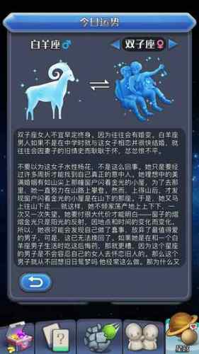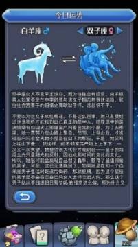 在星宫界面的下方有关于玩家自身星座“今日运势”以及“星座配对”,其中配对的解析是以144篇关于星座的故事而编写的,每个玩家可以看到自己所属的星座与12个异性星座的文章解析!希望对大家的生活与人沟通方面提供帮助。
