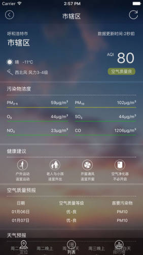 内蒙古空气质量发布软件是一款检测内蒙古空气质量的app,使用内蒙古空气质量发布软件,就能提前知道内蒙古地区的空气情况,让你在出门前做好防护准备哦,觉得这款软件还不错的朋友快来下载吧!