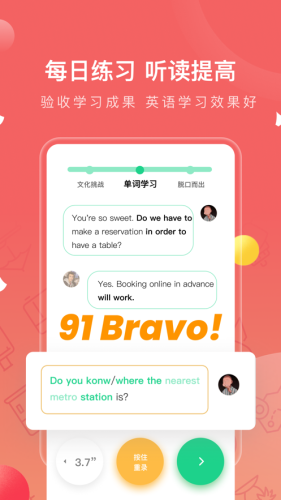下载英语流利说iOS版362.2M197人在玩英语流利说iOS版是一款有趣好玩的英语口语学习软件,通过系统的内容编排,每天更新更多地道实用的英语对话题材,可以更好有效的提升你的英语口语、单词、语法、听力等能力。不背单词,不学语法,