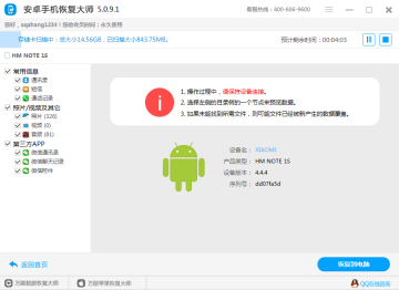 一款安卓Android手机数据恢复软件,它具备手机通讯录、短信、通话记录、照片、音乐和视频误删除恢复。软件运行在Windows平台,通过数据线操作手机。