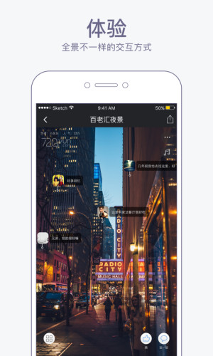 支持”理光全景相机“,” insta360“等主流全景相机所拍摄的全景照片,上传后自动生成为可交互的360°全景,并且支持分享给微信朋友圈或好友。