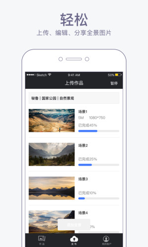 不论你是在网站中上传的作品,还是通过720yun微信公众号上传的作品,在720app中都可以及时查看和编辑。