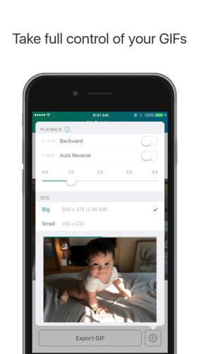 活泼的让你的GIF与广泛的编辑功能的完全控制:装饰,向后播放,自动反转、转速控制。