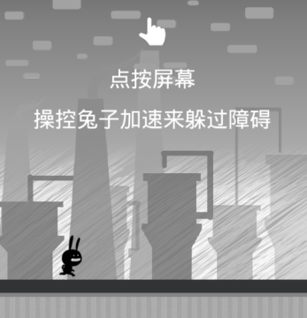 点按屏幕,操控兔子加速来躲过障碍。 非常简单的操作,难易控制的节奏,会让人有一种停不下来的感觉。