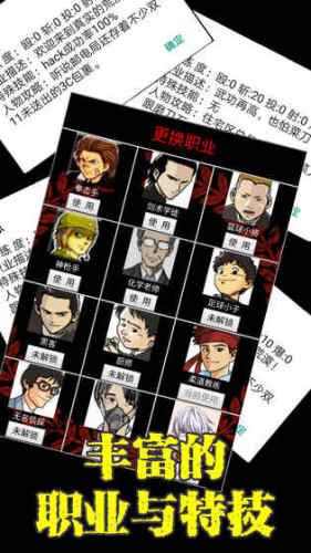 医生:无初始熟练度,特技:可以免体力包扎伤口。使用恢复物品时,效果x1.2。中毒扣除毒物效果一半,移动掉血减半。初始防御+15