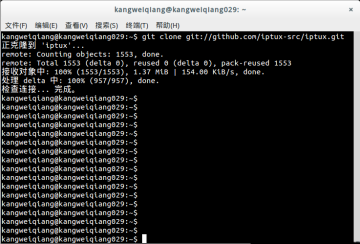 2、克隆(截取)iptux的版本库。命令:git clone git://github.com/iptux-src/iptux.git