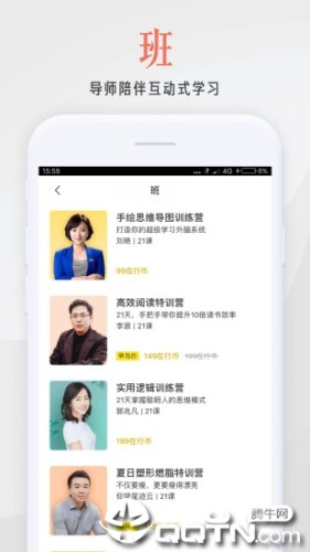 「 班 」主讲+助教双师模式,学员跟随行家深度学习,达成阶段“小目标”。