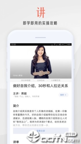 “在行一点”,原“分答”的升级版,其以班、课、讲、问四个核心点,帮助千万用户在行一点,成功自己所在行业中的翘楚。