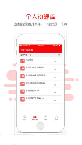 个人资源库,定制资源随时保存——资源浏览时可通过APP端将喜欢的资源收录到我的资源库中,通过网页登陆畅言可一键找到收录的资源并下载。