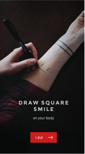1、使用INKHUNTER app这款软件前,需要用笔在身体上画一个呆萌呆萌的「方形笑脸」;