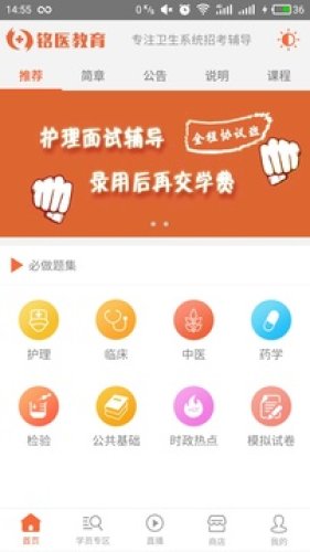 铭医教育app是一款主要从事卫生事业单位考试辅导的实用软件,为用户提供了最全面最专业的医学知识,不受地域限制,随时随地都能学。帮助大家都能顺利的通过考试。感兴趣的用户快来下载体验吧。