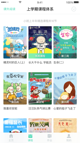 课程表:和教师端课程表同步,了解园所整个学期的阅读教学安排以及当周的教学计划。