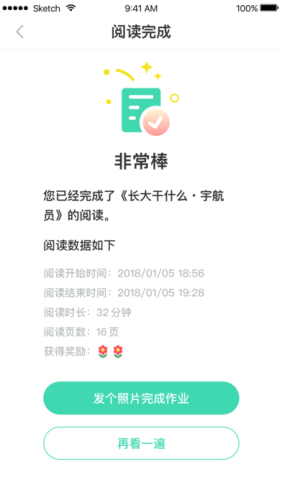 完成老师发布的动画书阅读作业,为孩子形成阅读成长记录。