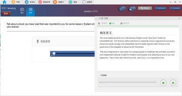 写作听力播放:可以查看听力原文,原文翻译,以及暂停播放录音: