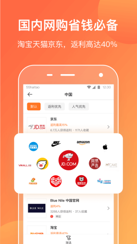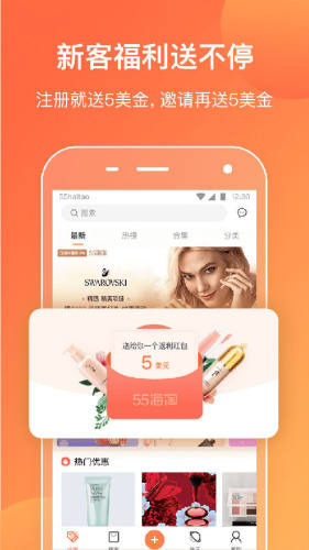 55海淘返利app是一款海外购物平台,平台拥有海量商品,在这里,用户可以获得全球折扣实时播报,拥有高额返现,并且商品正品有保障,觉得不错的朋友赶紧下载使用吧。