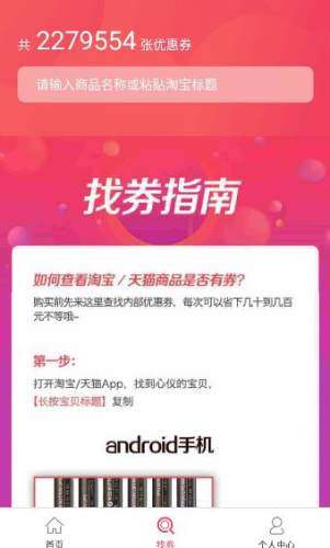 另外,用户朋友们还可以直接在里面找券,可以直接输入商品的名称或者是粘贴淘宝标题,就可以找到你想要的优惠券了。