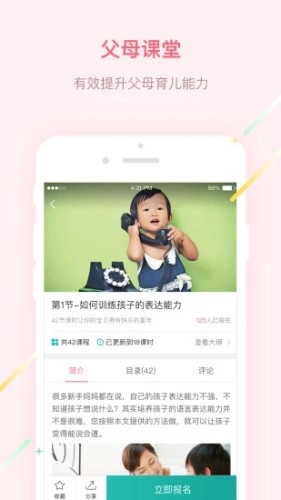 3、父母可课堂: 自有课程即将上线,提高父母的育儿能力。