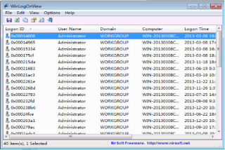 系统安全事件日志查看器,winlogonview是Windows Vista / 7 / 8 / 2008,分析了Windows操作系统的安全事件日志的一个简单的工具,并检测到登录和注销用户的日期/时间。每一次,在一个用户登录/注销您的系统,显示以下信息:登录ID,用户名,领域,计算机,登录时间,退出时间,持续时间,和网络地址。