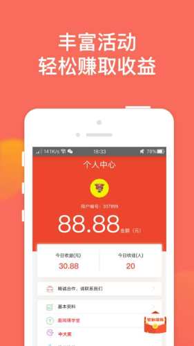 拥有转发与收徒两种收益方式,每天花少量时间即可获得稳定收益。更多赚钱方式等待您的挖掘!