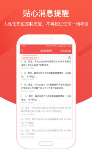 智能推荐职位提醒、用户关注的报考公告后续状态变更提醒
