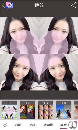 2、画中画美图:更有方形、心形、镜中画、简拼多种画中画特效,让您拥有独特美照,尽享美丽心情