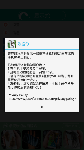 4.20秒后,虚拟蛇就会在屏幕上出现!恶作剧开始,你的朋友会被吓到:)
