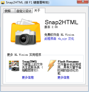 可为指定的文件夹创建html网页快照,通过html网页快照文件就能快速浏览文件夹文件内容和目录结构。Snap2HTML可为你的硬盘的文件夹结构做一个“快照”,并把它保存为HTML文件,内置搜索窗口。软件特点:创建文件夹列表,并保存为HTML;文件搜索功能;可排序的文件列表视图;Unicode支持;可以自己修改HTML样式模板。
