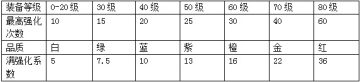 装备根据自身等级决定可强化的最高次数