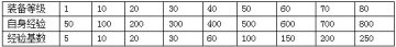 装备经验和升级经验: