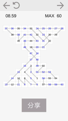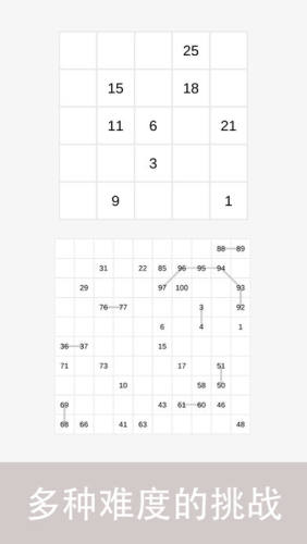 游戏的目标是在空格中填入合适的数字,使数字从小到大连成一条连续的线。
