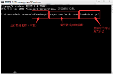 2、直接在cmd里输入:wkhtmltopdf http://www.baidu.com/D:website1.pdf(注意中间有空格哈)