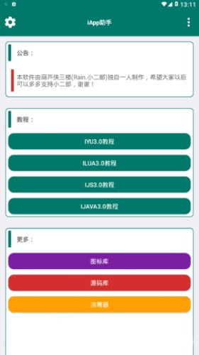 葫芦侠大神小二郎制作的一款iApp编程学习软件,支持iApp编程学习、网站源码获取、图标制作等功能,非常简洁的一款手机工具箱!
