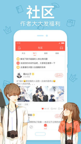 西瓜漫画app,免费精品漫画每日更,直播作者大大狂开车,社区作者大大发福利,高清离线缓存省流量,还有独家正版作品超精彩哦!